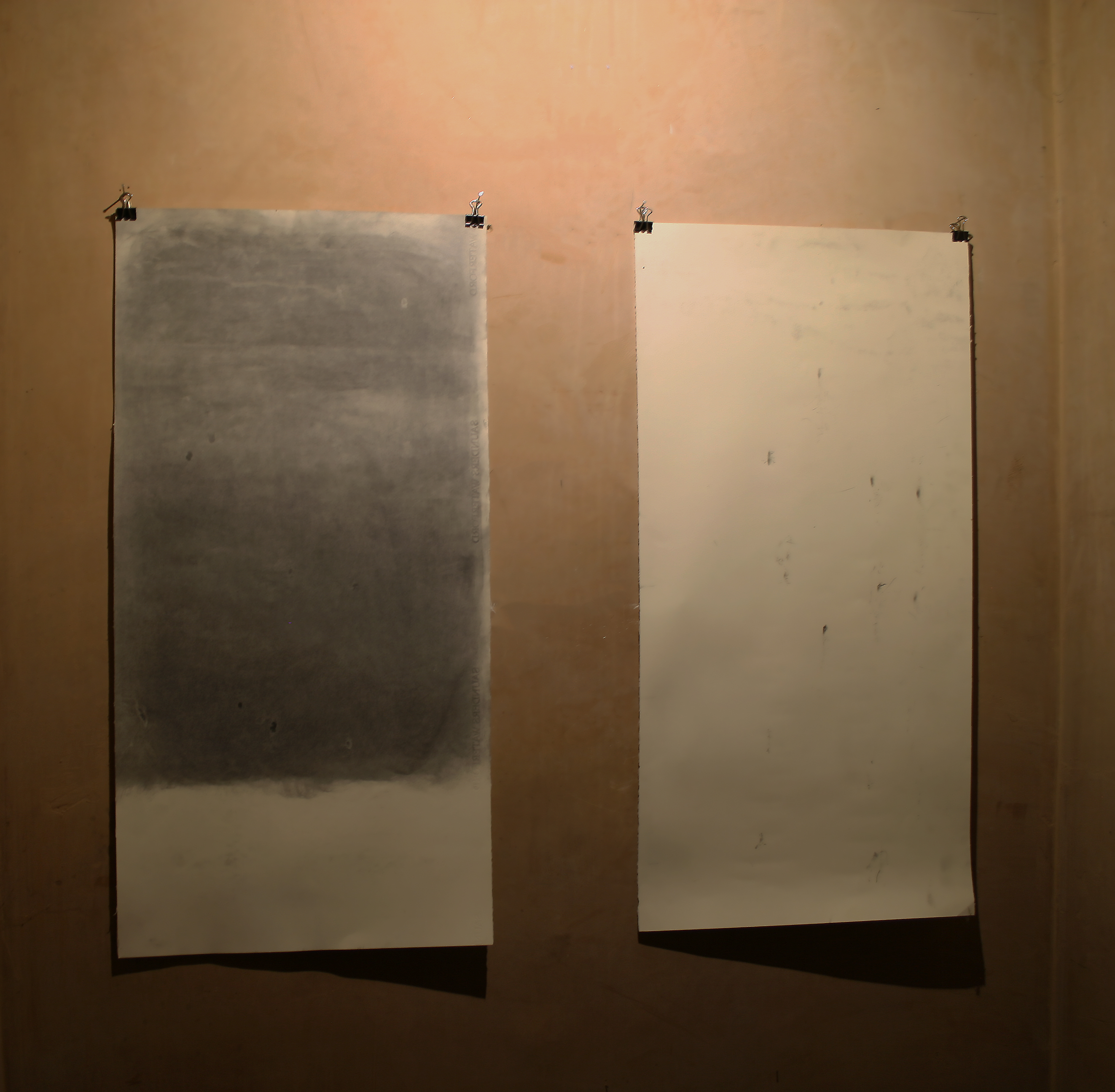 Postal Drawing was developed to address the implications of transporting artefacts to exhibitions that feature physical work in an age of financial crisis. To achieve this a drawing box was constructed out of corex plastic and paper and a drawing ‘shuttle’ added, in action whilst the work was couriered from the site of production to the site of exhibition the particular motions produced the marks that formed the final presentation of the work. The work explores the transformation of actions and movement defined by a specific journey into a visual drawing. The artist is in control of certain aspects such as choice of paper or types of pencils but the outcome is defined by each venues location thus the work captures the unseen phenomena of exhibiting and transferring work from one location to another. The methods are chosen as they allow the concept of movement between venues to become the content of the work, in each case what is displayed is a direct correlation with that venues and the artist’s studio.