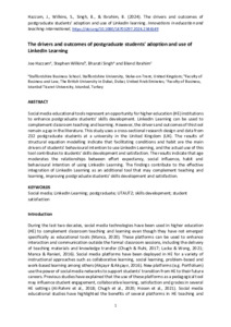 HAZZAM, Joe, Wilkins, Stephen, SINGH, Bharati and Ibrahim, Blend (2024) The drivers and outcomes of postgraduate students' adoption and use of LinkedIn Learning. Innovations in Education and Teaching International.