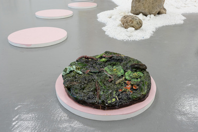In a similar vein, this project draws upon the potential of rhizomatic architectures inherent in art fair designs and reimagines the dynamics of curated group exhibitions. It navigates the intricate interplay of artworks, artists, and the spatial dynamics of the gallery. The ensuing dance unfolds a multifaceted panorama of ontological realities and embedded intentions. Yet, “Nurturing Nodes in the Nook of an Odd Sock” rejects the pursuit of a central focal point, choosing instead to disrupt the balance typically preserved by hosting systems. This provokes a sense of creative conflict that is paradoxical in nature. Foregoing the stabilizing function of the template, the exhibition intentionally invites volatility and variability, echoing the ever-changing nature of slime.
