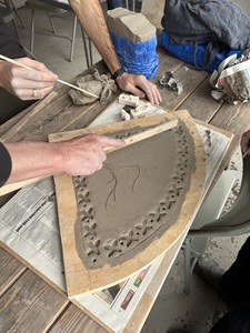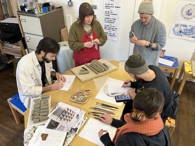 ![[thumbnail of Community tile making workshop, using the hand made tools and stamps to create patterns in the white clay body, to then fill with blue clay slip]](https://eprints.staffs.ac.uk/8982/40.hassmallThumbnailVersion/IMG_0530.jpeg)