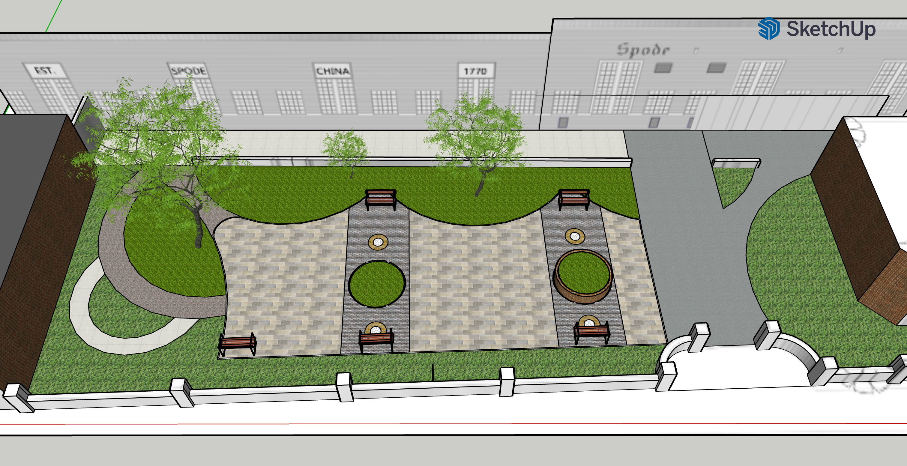 A successful proposal was written to Historic England within the HAZ - High Street Action Zone initiative. The project involved skills development workshops with the public to create and install hand made bricks and tiles which drew on Spode’s Historic Patterns, and invited the public to make bespoke tools based on the details in Spode Wares, for use with clay (some of which was dug from within the garden), and then to make bricks and decorative tiles for the garden’s new floor.