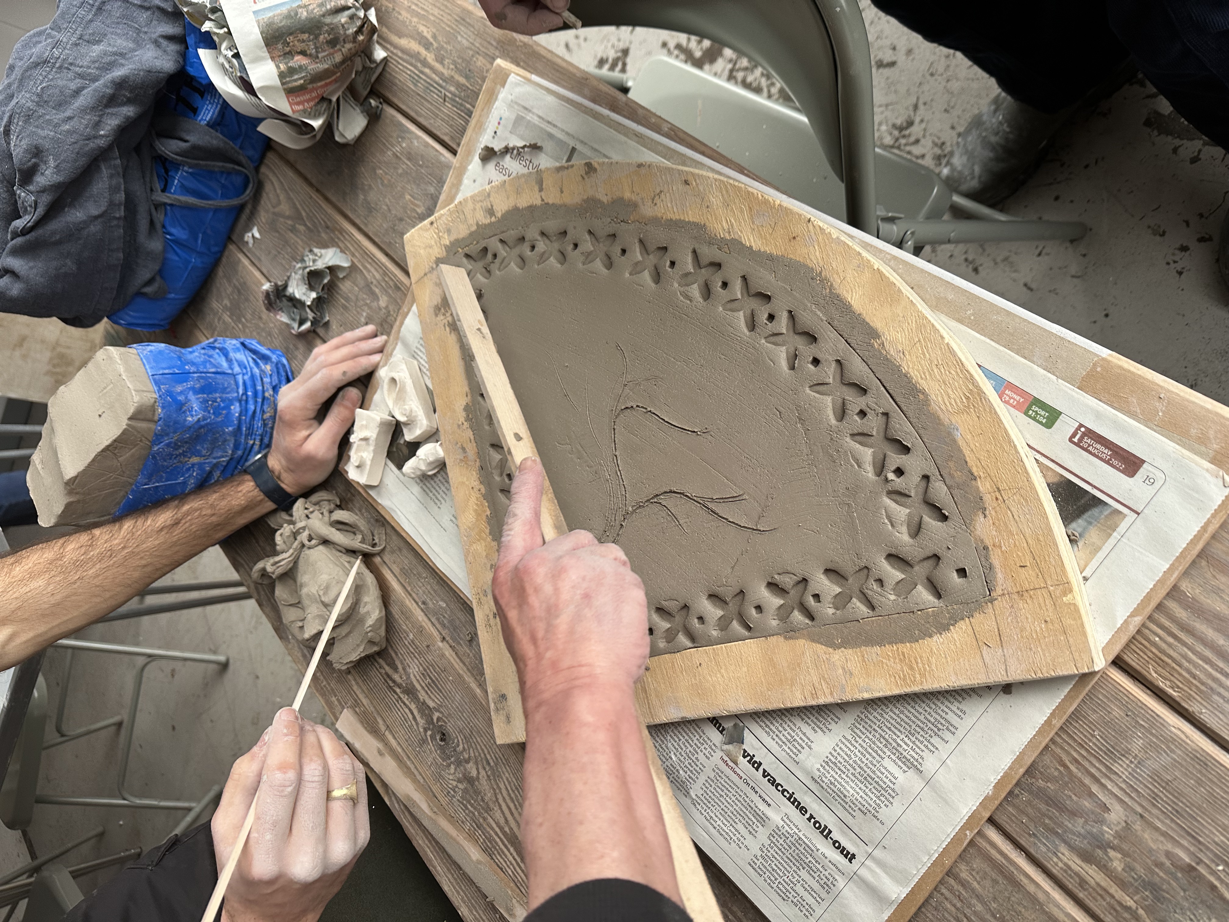 ![[thumbnail of Community tile making workshop, using the hand made tools and stamps to create patterns in the white clay body, to then fill with blue clay slip]](https://eprints.staffs.ac.uk/8982/40.hassmallThumbnailVersion/IMG_0530.jpeg)