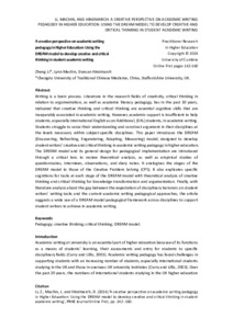 student writers’ creative and critical thinking in academic writing pedagogy in higher education. The DREAM model and its general design for pedagogical implementation are introduced