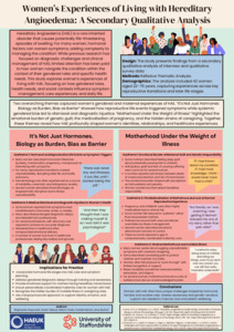 Hereditary Angioedema (HAE) is a rare inherited disorder that causes potentially life-threatening episodes of swelling. For many women, hormonal factors can worsen symptoms, adding complexity to managing the condition. While previous research has focused on diagnostic challenges and clinical management of HAE, limited attention has been paid to how women navigate the condition within the context of their gendered roles and specific health needs. This study explores women’s experiences of living with HAE, focusing on how gendered roles, health needs, and social contexts influence symptom management, care experiences, and daily life.