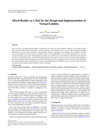 Barbsy, Luke and Headleand, Christopher (2025) Mixed Reality as a Tool for the Design and Implementation of Virtual Exhibits. In: Computer Graphics & Visual Computing (CGVC) 2025: Eurographics UK Chapter Proceedings. The Eurographics Association. ISBN 978-3-03868-293-6