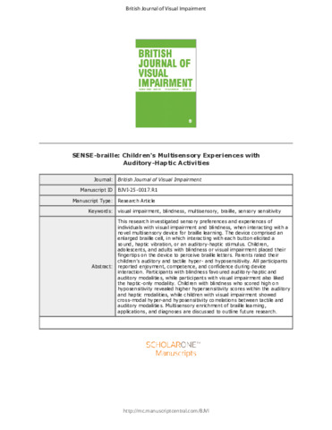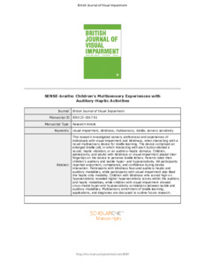 | Uncontrolled Keywords: | visual impairment, blindness, multisensory, braille, sensory sensitivity |