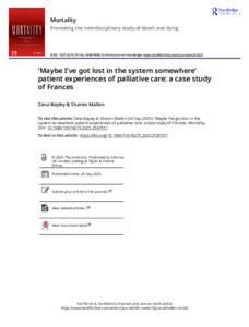 Bayley, Zana and Mallon, Sharon (2025) ‘Maybe I’ve got lost in the system somewhere’ patient experiences of palliative care: a case study of Frances. Mortality. ISSN 1357-6275