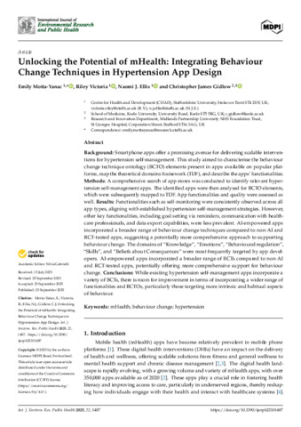 Motta Yanac, Emily, RILEY, Victoria, ELLIS, Naomi and GIDLOW, Christopher (2025) Unlocking the Potential of mHealth: Integrating Behaviour Change Techniques in Hypertension App Design. International Journal of Environmental Research and Public Health, 22(10) (1487). ISSN 1660-4601
