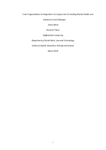 Bratt, Simon (2025) From Fragmentation to Integration: An Inquiry into Co-Existing Mental Health and Substance Use Challenges. Doctoral thesis, Staffordshire University.