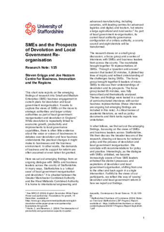 GRIGGS, Steven and HAZZAM, Joe (2025) SMEs and the Prospects of Devolution and Local Government Re- organisation. A Research Note. Discussion Paper. CBIR, University of Staffordshire. (Unpublished)