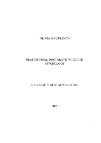 French, Olivia Mae (2025) Portfolio for Professional Doctorate in Health Psychology. Doctoral thesis, University of Staffordshire.