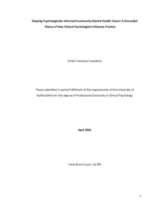 Cosentino, Emily Francesca (2025) Shaping Psychologically Informed Community Mental Health Teams: A Grounded Theory of How Clinical Psychologists Influence Practice. Doctoral thesis, University of Staffordshire.