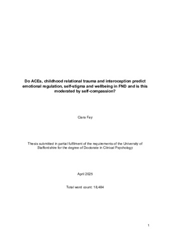 Fay, Ciara (2025) Do ACEs, childhood relational trauma and interoception predict emotional regulation, self-stigma and wellbeing in FND and is this moderated by self-compassion? Doctoral thesis, University of Staffordshire.