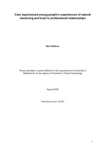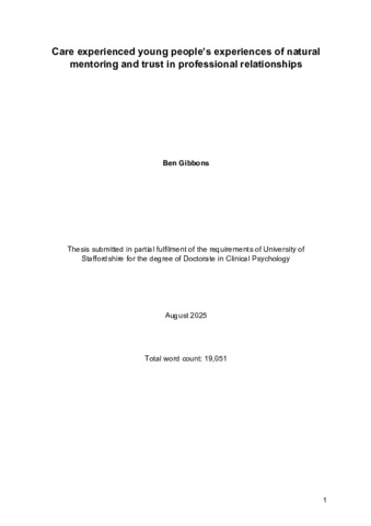 Gibbons, Ben (2025) Care experienced young people’s experiences of natural mentoring and trust in professional relationships. Doctoral thesis, University of Staffordshire.