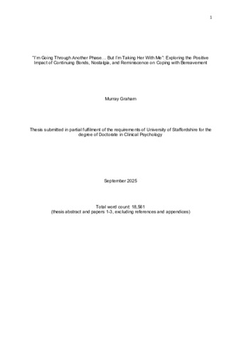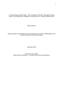 Graham, Murray (2025) “I’m Going Through Another Phase… But I’m Taking Her With Me”: Exploring the Positive Impact of Continuing Bonds, Nostalgia, and Reminiscence on Coping with Bereavement. Doctoral thesis, University of Staffordshire.