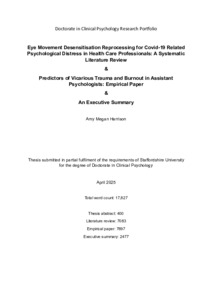 Doctorate in Clinical Psychology Research Portfolio - Eye Movement Desensitisation Reprocessing for Covid-19 Related Psychological Distress in Health Care Professionals: A Systematic Literature Review & Predictors of Vicarious Trauma and Burnout in Assistant Psychologists: Empirical Paper & An Executive Summary