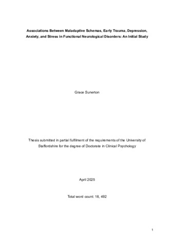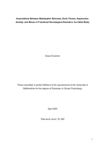 Sunerton, Grace (2025) Associations Between Maladaptive Schemas, Early Trauma, Depression, Anxiety, and Stress in Functional Neurological Disorders: An Initial Study. Doctoral thesis, University of Staffordshire.