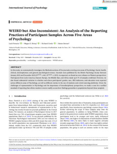 Petrutiu, Leah, Birney, Megan, COOKE, Richard and STEWART, Simon (2026) WEIRD but Also Inconsistent: An Analysis of the Reporting Practices of Participant Samples Across Five Areas of Psychology. International Journal of Psychology, 61 (2). e70168. ISSN 0020-7594
