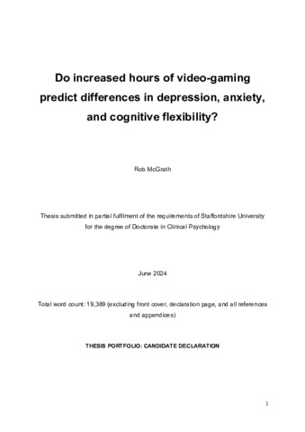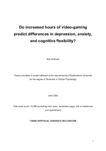 McGrath, Robert (2024) Do increased hours of video-gaming predict differences in depression, anxiety, and cognitive flexibility? Doctoral thesis, Staffordshire University.