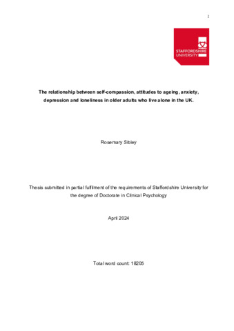 Sibley, Rosie (2024) The relationship between self-compassion, attitudes to ageing, anxiety, depression and loneliness in older adults who live alone in the UK. Doctoral thesis, Staffordshire University.