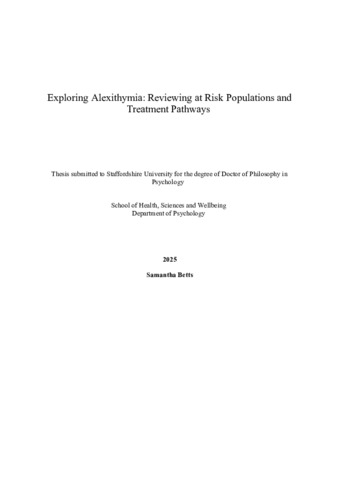 Betts, Samantha (2025) Exploring Alexithymia: Reviewing at Risk Populations and Treatment Pathways. Doctoral thesis, University of Staffordshire.