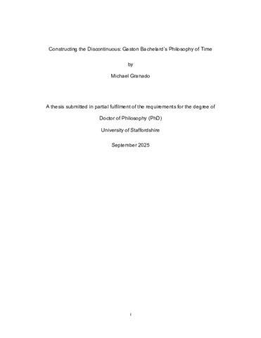 GRANADO, Michael (2025) Constructing the Discontinuous: Gaston Bachelard’s Philosophy of Time. Doctoral thesis, University of Staffordshire.